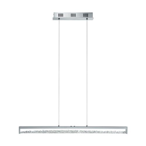 A CARDITO 1 LED függesztett lámpa krómozott fémből és alumíniumból készült, és hosszúkás üvegtesttel rendelkezik, amelyben csillogó kristályok találhatók. A tiszta üveg kristályok csillogó, magas minőségű megjelenést teremtenek, amint a fény bekapcsol, az integrált LED-ek pedig kellemes fényt bocsátanak ki, amely igény szerint szabályozható. Választhat meleg fehér, semleges fehér és hideg fehér fény között. Az „érints meg” zóna képes be- és kikapcsolni a függesztett lámpát, valamint szabályozni a színhőmérsékletet. A függesztett lámpa 100 cm hosszú, és biztosan különleges, stílusos, feltűnő díszítőelem lesz otthonában, talán egy hosszú asztal felett az étkezőben.