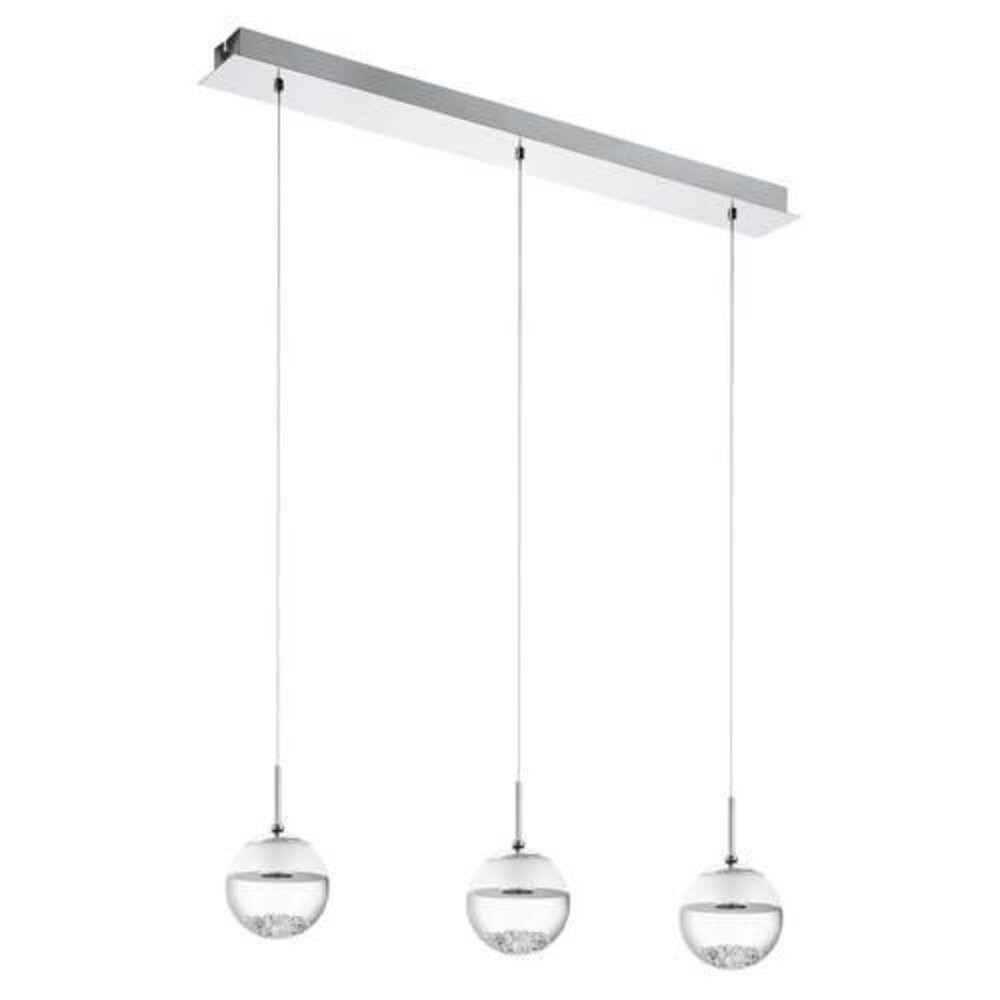 A MONTEFIO 1 LED függőlámpa három gömbfejet tartalmaz, amelyek tiszta és szatén üvegből készültek. A design hosszú króm színű fém mennyezeti tartót, és minden lámpaernyő gömb belsejében kristályok találhatók. A magas minőségű üvegkristályok csillogó, prémium megjelenést kölcsönöznek, amikor a fény bekapcsolva, míg az integrált LED-ek kellemes, meleg fehér fényt bocsátanak ki. Ez a függőlámpa tökéletes befejező elem a modern belső terek számára, és különleges világítást teremt a nappaliban vagy az étkezőasztal felett.
