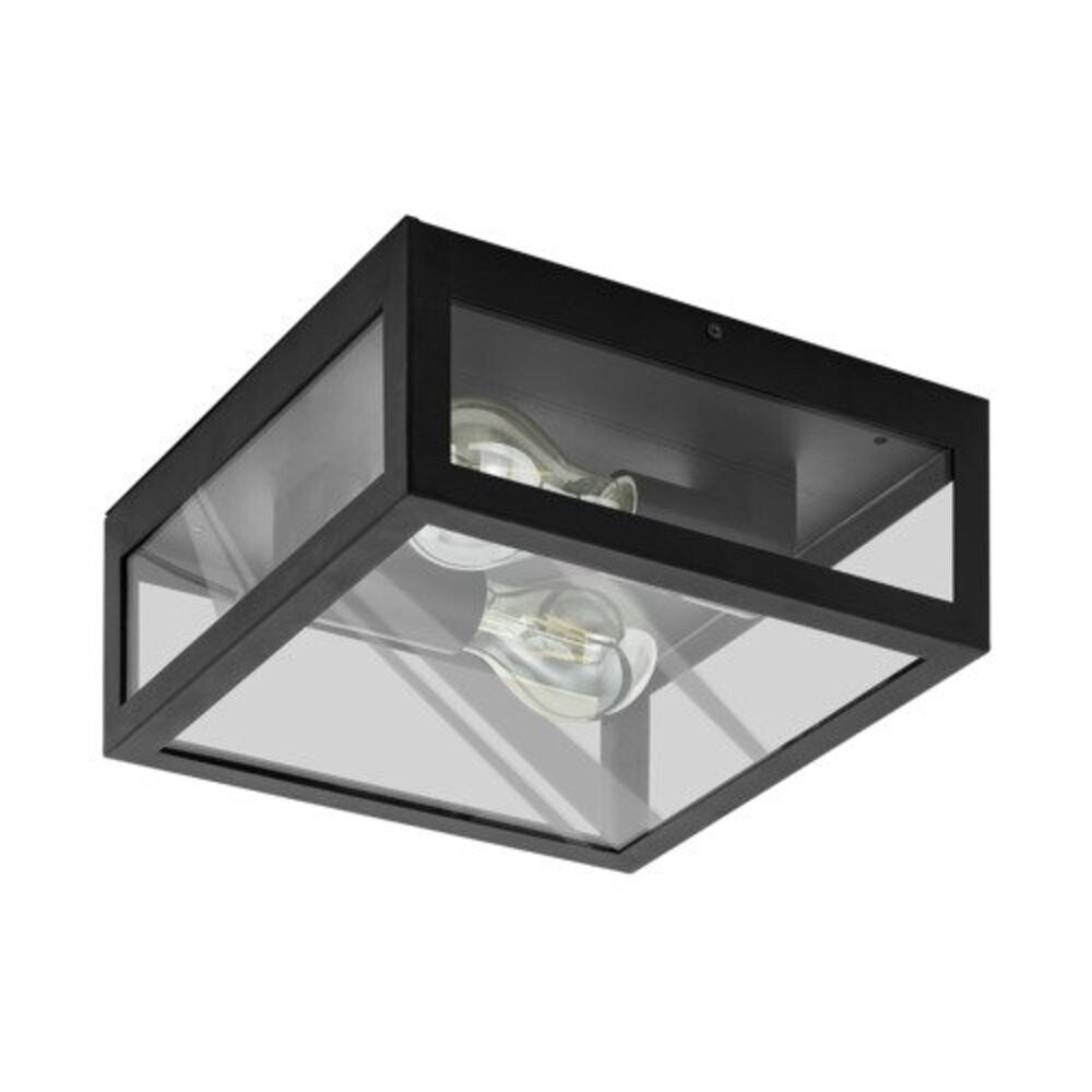 Az ALAMONTE 1 kültéri mennyezeti lámpa elegáns fekete acél kerettel és átlátszó üvegpanelekben elhelyezett fényforrásokkal rendelkezik. Az IP44 vízállóságnak köszönhetően ideális választás kültéri használatra, modern kültéri terek díszítésére. A képen látható filament fényforrások nem tartozékai a terméknek. A lámpa E27 foglalatú, és 2 darab E27 fényforrást igényel, maximum 28W teljesítménnyel. A lámpa kapcsoló nélkül működik, és a maximális magassága 290 mm, ami lehetővé teszi, hogy bármilyen kültéri környezetbe könnyen illeszkedjen.