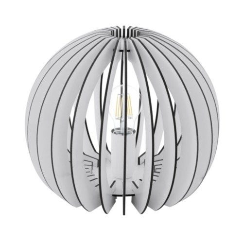 A COSSANO sorozat asztali lámpája fehér fából és fehér műanyagból készült, zsinórkapcsolóval működtethető. A lámpa védőszigeteléssel rendelkezik, és E27-es foglalatra van szüksége a világításhoz. A termék nem tartalmaz fényforrást. A COSSANO sorozat különleges fa lamellái tökéletesen trendiek, így lendületet adnak otthonának. A lámpák különböző formákban, méretekben és színekben érhetők el.