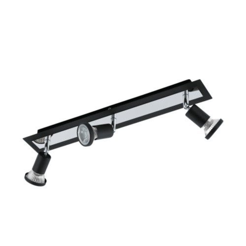 A SARRIA LED mennyezeti lámpa egy téglalap alakú fekete fémtestet és három állítható fekete fém spotlámpát tartalmaz. A lámpán króm színű fémrészletek is találhatóak, amelyek tökéletesen kiegészítik a minimalista dizájnt. A forgatható spotlámpák lehetővé teszik a fény beállítását, így kiemelhetők a szoba egyes területei, legyen szó a konyháról, a nappaliról, a hálószobáról vagy az előszobáról. A termék GU10-es LED izzókat tartalmaz, amelyek kellemes meleg fehér fényt bocsátanak ki.