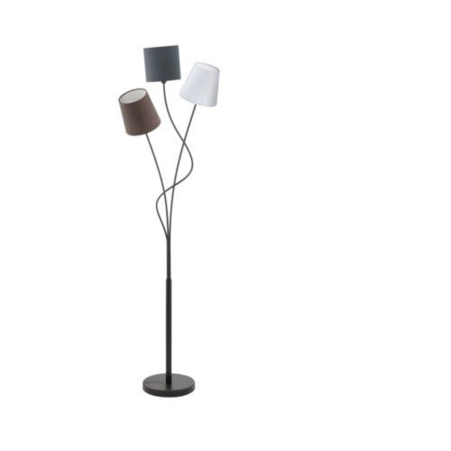 A MARONDA állólámpának fekete ívelt fémalapja és három szövet árnyékolója van - egy antracit, egy fehér és egy barna. A design különböző formájú lámpaernyőket tartalmaz, hogy vonzó, jól kiegyensúlyozott megjelenést hozzon létre. A lámpa könnyen be- és kikapcsolható a padlón lévő kapcsolóval. Modern designjával ez az állólámpa otthonos világítást biztosít bármilyen helyiségben, legyen az hálószoba, nappali vagy étkező. A villanykörték nincsenek tartozékban. A termék E14-es foglalatokkal rendelkezik, és E14-es villanykörtéket igényel.