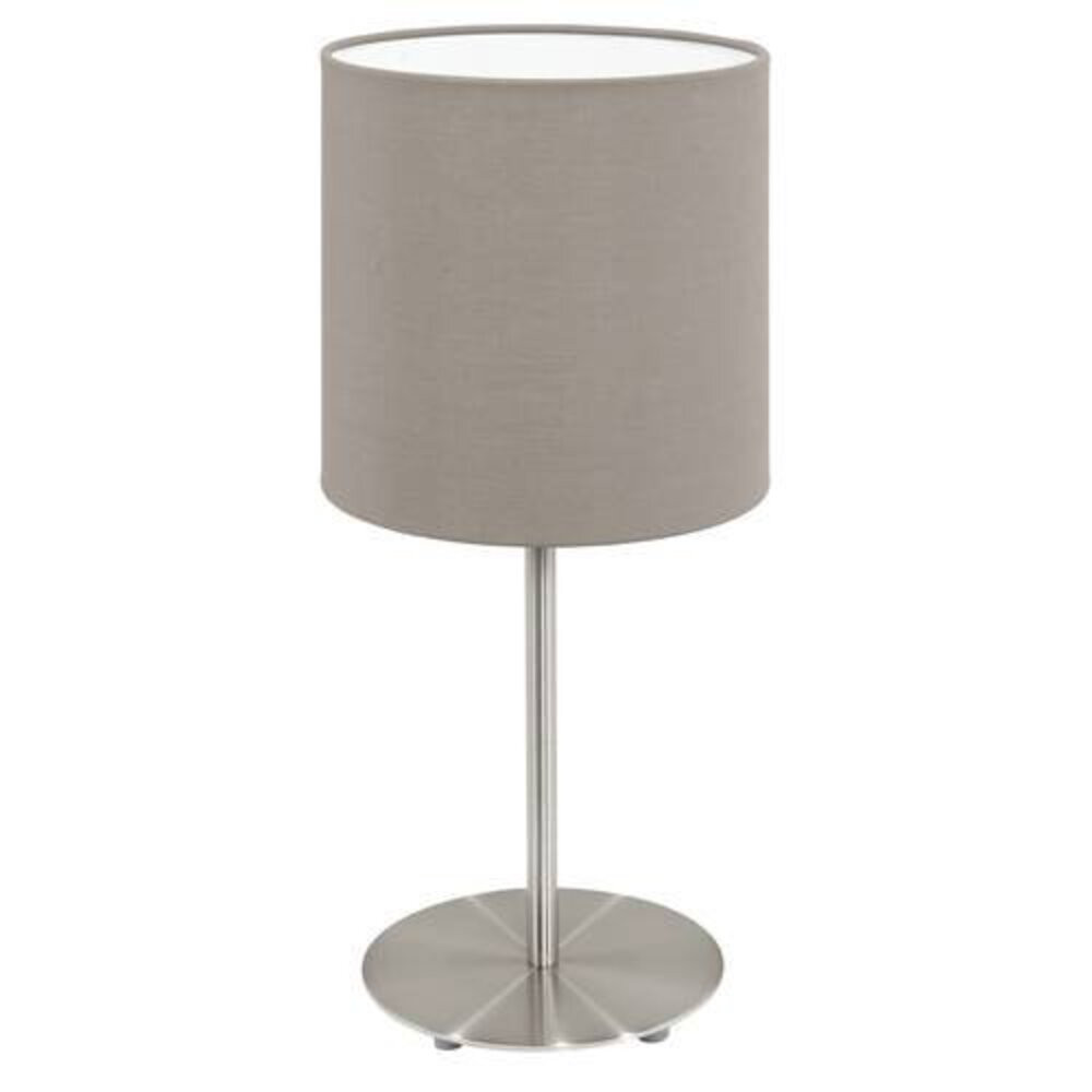 A PASTERI asztali lámpa modern, letisztult dizájnja matt nikkel fém talppal és taupe színű textil búrával készült. Ideális választás bármely belső térbe, hiszen könnyen illeszkedik a különböző stílusokhoz. A lámpa egyszerű zsinórkapcsolóval kapcsolható be és ki, biztosítva a kényelmes használatot. Tökéletes éjjeli lámpaként vagy nappali oldalszekrényeken, meleg világítást biztosít otthonunkban. A termék E14 foglalattal rendelkezik, de a fényforrás nem tartozék. A PASTERI család különböző formákban és színekben elérhető, a modern acél és textil anyagok kombinációjával.