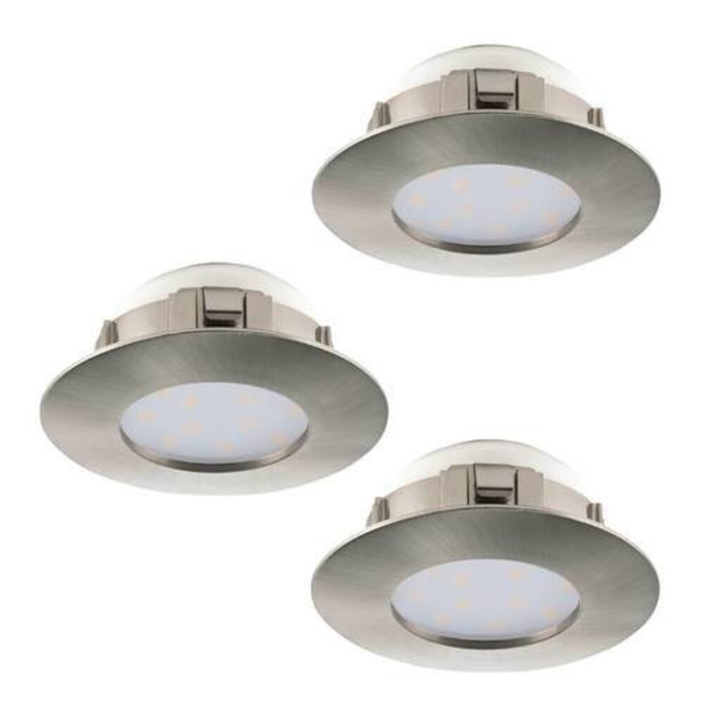 Ezek a PINEDA sorozatból származó háromszor beépített lámpák szatén nikkel műanyagból készültek. Védőszigeteléssel rendelkeznek, és minden egyes lámpa meleg fehér fényű LED-lámpával van felszerelve.