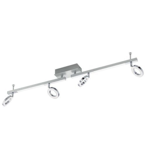 A CARDILLIO 1 LED mennyezeti lámpa krómszínű fémötvözetből készült, négy karikára emlékeztető reflektorral. Ezenfelül egy hosszú fénypanel van beépítve a falilámpa karjába, amely lineáris profillal rendelkezik. Az integrált LED-ek a szatén műanyag borítás alatt kellemes, meleg fehér fényt bocsátanak ki. A mennyezeti reflektor tökéletesen belesimul a modern stílusba. A designban szereplő forgatható fejek lehetővé teszik, hogy a fényt célzottan beállíthassuk a szoba egyes területeire, legyen szó a konyháról, nappaliról, hálószobáról vagy előszobáról.