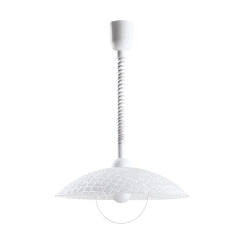 Az ALVEZ függőlámpa kerek, fehér, fodros üveg lámpaernyővel rendelkezik, amely egy fehér műanyag baldachinból lóg le. Az ernyő rácsos mintázattal is rendelkezik, amely tiszta és matt felületeket tartalmaz, így hozzájárul a dizájnnál. A függőlámpa magassága a spirál kábellel és a fémbakotrással állítható be a lámpaernyőn. A függőlámpa tökéletesen illeszkedik a hagyományos vidéki stílusú belső terekbe, különleges világítást biztosítva a konyhában vagy az étkezőasztal felett. A lámpaizzó nincs tartozékban. A terméknek E27 foglalata van, és E27 izzót igényel.