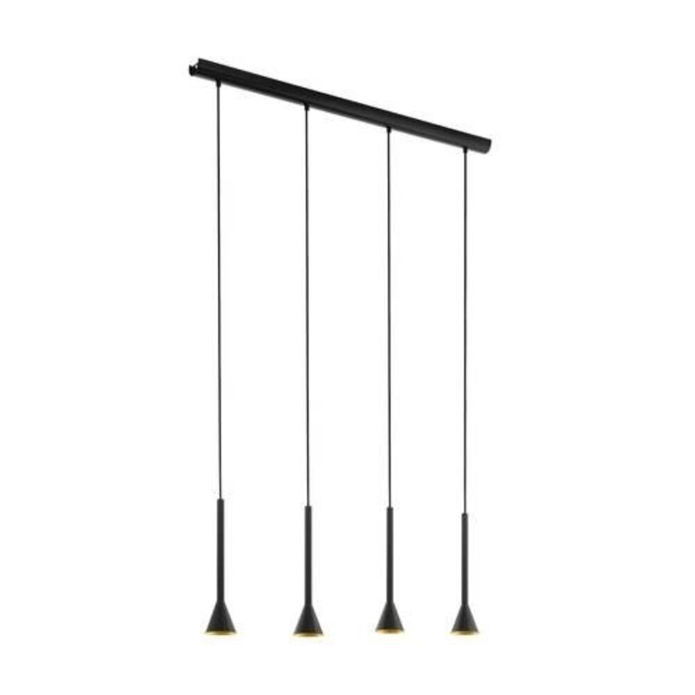 A CORTADERAS függeszték lámpa négy egyszerű hosszúkás fémtestből áll, amelyek fekete színben lógnak egy azonos színű lineáris fém baldachinból. A fejek arany színű belső befejezése kiegészíti a lámpa minimalista megjelenését. A függeszték lámpa tökéletesen összhangban van a modern belsőépítészeti stílusokkal, és tökéletes világítást biztosít a nappaliban vagy az étkezőasztal fölött. A termékhez GU10 LED fényforrás tartozik, amely kellemes, meleg fehér fényt bocsát ki.