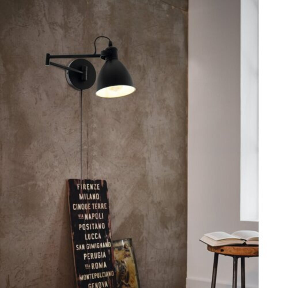 A SAN PERI fali lámpa fekete fém kivitelű, állítható karjával és fejével. A lámpabúra belülről fehér bevonatú, kiváló fényt ad, míg a billenési kar segítségével a fényt a szoba egyes területeire irányíthatjuk. A fali lámpát a kábelen elhelyezkedő kapcsoló segítségével könnyen be- és kikapcsolhatjuk. A minimalista design tökéletesen illeszkedik a modern, vintage és ipari stílusú enteriőrökhöz, ideális világítást biztosítva otthona számára. A képen látható izzó nem tartozék. A termék E27-es foglalattal rendelkezik, és A60 E27-es izzót igényel.