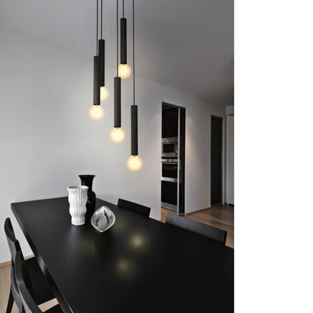 A CORTENOVA függőlámpa fekete fémből készült, és öt henger alakú lámpatartóval rendelkezik. A függő lámpa tökéletesen illeszkedik a minimalista és modern belterekbe. A termék minimalista kialakítása ellenére, a termék meghatározó fényt teremt bármilyen térben, legyen az a nappali vagy a étkezőasztal fölött az étkezőben. A termékhez 5 x E27 izzó szükséges, amelyek nem tartoznak hozzá.