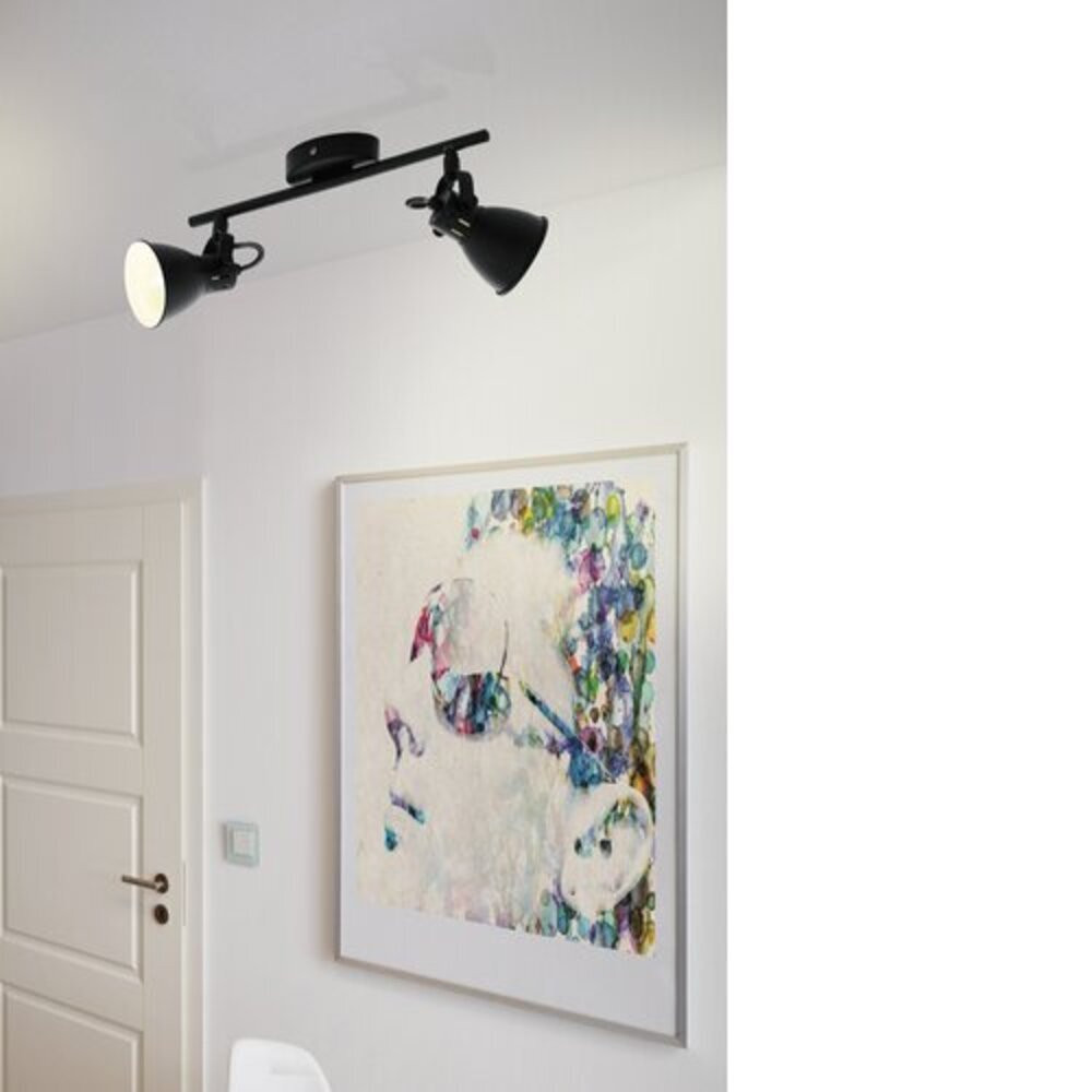 A 'SERAS 2' LED mennyezeti lámpa fekete fém tartóval és két állítható fekete fém spotlámpával rendelkezik, krémszínű belső felületekkel. A mennyezeti spotlámpa divatos megjelenése tökéletesen kiegészíti a modern enteriőrt és a konyhában, nappaliban, hálószobában, előszobában vagy étkezőben koncentrált világítást biztosít. A termékhez GU10 izzók tartoznak, melyek kellemes, meleg fehér fényt állítanak elő.