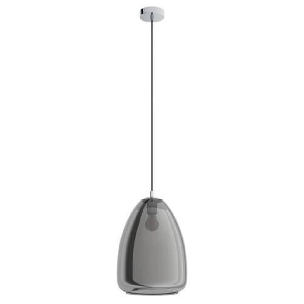 Az ALOBRASE függesztett lámpa kerek, füstölt fekete üveglámpabúrával rendelkezik, amely egy fekete kábellel lóg egy kör alakú krómszínű fém mennyezetről. 30 cm átmérőjével szinte bármely modern belső térbe illeszkedik a designja. A divatos függesztett lámpa stílusos megvilágítást biztosít a helyiségedben, akár a nappaliban, akár az étkezőasztal fölött található. A képen látható izzó nem tartozék. A termékhez E27-es foglalat szükséges, és E27-es izzót igényel.