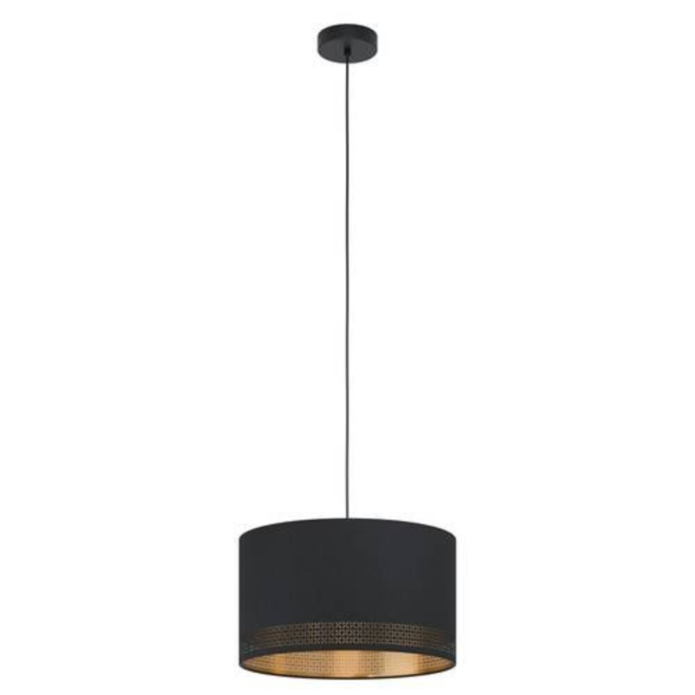 Az ESTEPERRA függő lámpa fekete fémből készült, kerek lámpaernyője pedig fekete szövetből készült, belül arany színű béléssel. A lámpaernyő szélén található kis kivágások lenyűgöző fény- és árnyékjátékot teremtenek, amint a fény bekapcsol. A függő lámpa szinte minden otthoni belső térbe illik és stílusos megvilágítást biztosít bármilyen helyiségben, legyen az a nappaliban vagy a étkezőasztal felett. A termék 1 E27-es izzót igényel, amely nem szerepel a csomagban.