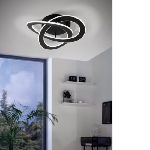 A ROLIMARE LED mennyezeti lámpa egy LED profillal rendelkezik, amely fekete alumíniumban készült és önmagába görbül. Az integrált LED-ek semleges fehér fényt bocsátanak ki a fehér műanyag diffúzoron keresztül. Modern és futurisztikus dizájnjával a termék stílusos világítást biztosít bármilyen helyiségben, legyen az a konyha, nappali, hálószoba, étkező vagy előszoba.