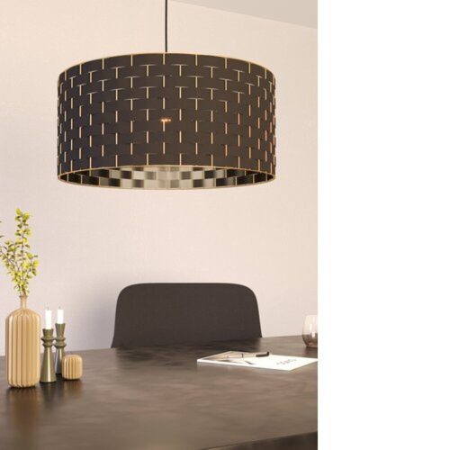 A MARASALES függeszték lámpa egy kör alakú drót árnyékolóval rendelkezik, melynek felülete brushed brass, és fekete szövetszalagokkal van átszőve. A fekete fém rögzítéssel párosítva, ez a lámpa egyedi dizájnjával és elegáns 60-as évekbeli megjelenésével szinte bármilyen belső térbe illik. 55 cm-es átmérőjének köszönhetően nagyméretű és figyelemfelkeltő elemként szolgálhat a nappaliban vagy az étkezőben. A termék nem tartalmaz fényforrást, de E27-es lámpafoglalattal rendelkezik, amely E27-es fényforrást igényel.