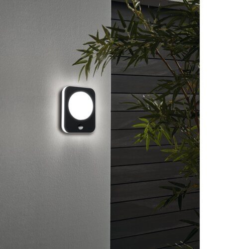 A MADRIZ kültéri LED fali lámpa elegáns fekete színű, lekerekített sarkú öntött alumínium házzal rendelkezik. A kör alakú fénypanel mögött elhelyezett beépített LED-ek és a fehér műanyag fénycsík harmonikus, meleg fehér fényt biztosítanak. A lámpa mozgásérzékelővel van felszerelve, amely automatikusan bekapcsol, megvilágítva a rossz látási viszonyú területeket, ezzel elriasztva a nem kívánt látogatókat. Az integrált szürkületérzékelő figyeli a környezeti fény szintjét, hogy a világítás csak szükség esetén kapcsolódjon be. Az lámpa IP44 védettséggel rendelkezik, így csepp- és fröccsenő víz ellen is védett, ideális kültéri használatra. A klasszikus dizájn révén a termék minden modern kültéri térbe jól illeszkedik, tökéletes választás házbejáratokra, teraszokra vagy erkélyekre. A fényforrás tartozék a termékhez, így azonnal használatra kész.
