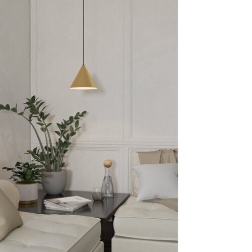 A NARICES függeszték lámpa egy stílusos otthoni megoldás, amely modern, minimalista vonalvezetésével tökéletesen illeszkedik a New Nordic stílushoz. A lámpa konikai formájú burája csiszolt sárgarézből készült, arany színű belső felülettel, amely elegáns megjelenést kölcsönöz a térnek. A fekete fém felület és a textil kábel harmonikus kontrasztot alkotnak. A termék ideális világítást biztosít nappaliban vagy étkezőben, használatához E27-es fényforrás szükséges, amely nem tartozék a termékhez. A lámpa maximális teljesítménye 1x40W, a kapcsolása pedig kapcsoló nélkül történik. Letisztult designjának köszönhetően bármilyen enteriőrben megállja a helyét.
