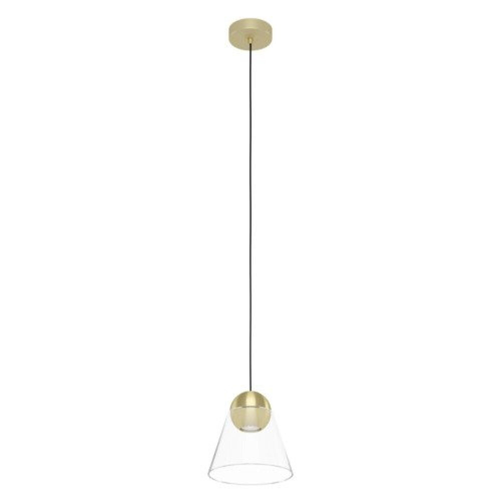 A CERASELLA LED függeszték lámpa modern dizájnjáról és stílusos megjelenéséről ismert. A lámpa konikus, átlátszó üvegbúrája egy csiszolt sárgaréz borítású fémből készült gömbbel van kombinálva, amely eleganciát kölcsönöz a térnek. A mennyezeti rögzítők színben harmonizálnak a búrával, így a lámpa összhangban van a legújabb trendekkel. A termékhez tartozik egy LED fényforrás, amely kellemes, meleg fehér fényt biztosít, megteremtve a tökéletes világítást bármely helyiségben. A GU10 lámpafoglalattal rendelkezik és egy darab GU10 fényforrást igényel. A függeszték ideális választás a nappali vagy étkező modern berendezéséhez.
