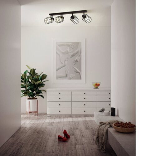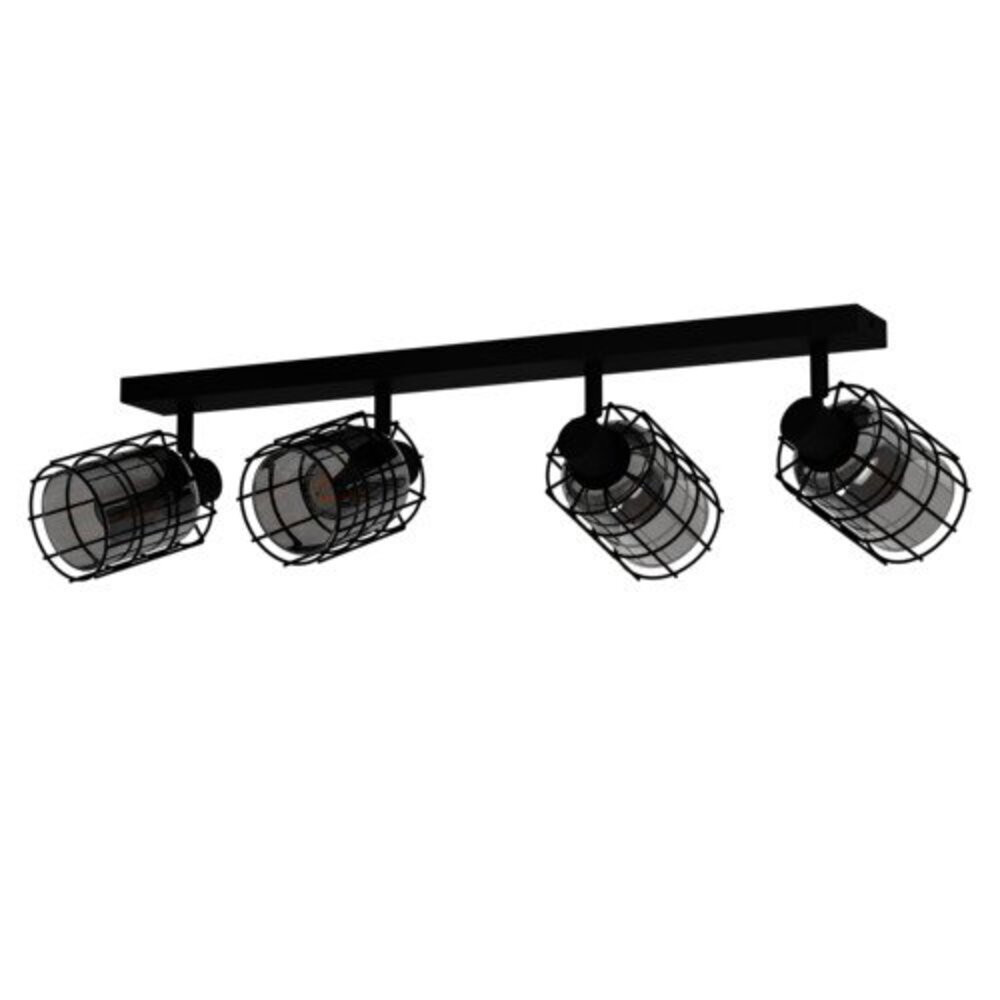 A CONSACA mennyezeti lámpa fekete fém vázzal és négy állítható spotlámpával rendelkezik. Minden lámpa fejében egy belső füstszínű üveg henger található, amelyet fekete drótháló vesz körül, így lenyűgöző fény- és árnyékjátékot teremt, amikor a lámpa ég. A mennyezeti spotlámpa tökéletesen illeszkedik a modern belső terekhez. Az állítható fények lehetővé teszik, hogy hangsúlyozzuk a helyiség egyes részeit, legyen szó konyháról, nappaliról, hálószobáról, folyosóról vagy étkezőről. A termék 4 x E27-es fényforrást igényel, amely nem tartozék.
