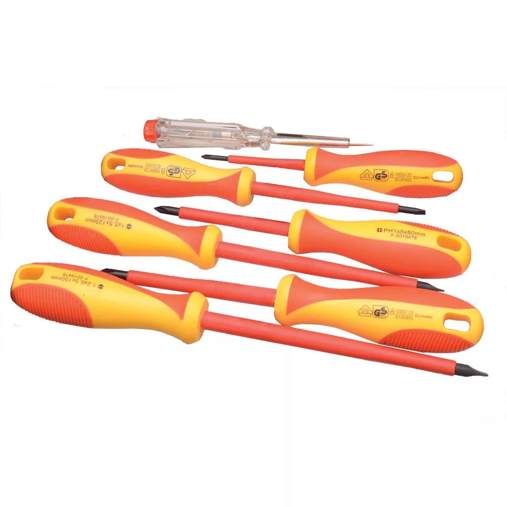 A 7 darabos VDE csavarhúzó készlet professzionális használatra készült, amely ideális választás az elektromos munkákhoz. A készlet összes csavarhúzója 1000V-ra tesztelt, így garantálja a biztonságos munkavégzést elektromos berendezések közelében. A csavarhúzók króm-vanádium ötvözetből készültek, ami biztosítja a magas tartósságot és ellenállóságot. Minden egyes darab ergonomikus fogantyúval rendelkezik, amely a maximális kényelemmel és a hatékony erőátvitellel járul hozzá a felhasználói élményhez.