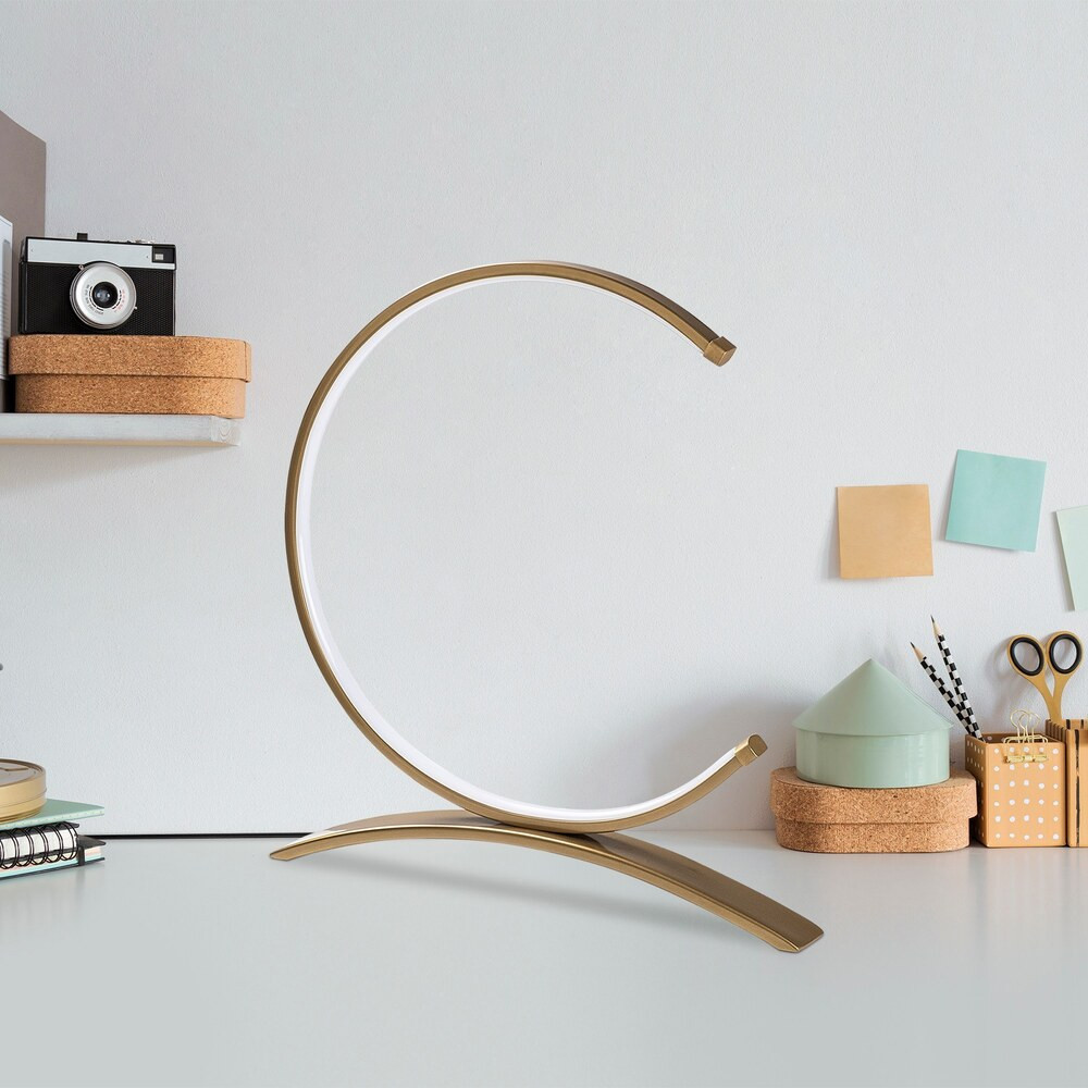 Elegáns arany asztali lámpa, fém ház, 35 cm szélesség x 34 cm magasság x 4 cm mélység | 12W-os LED-aljzat, 3000K meleg fény, 80 CRI | Stílusos világítás otthoni és irodai használatra, be/ki kapcsoló, 200 cm-es kábel