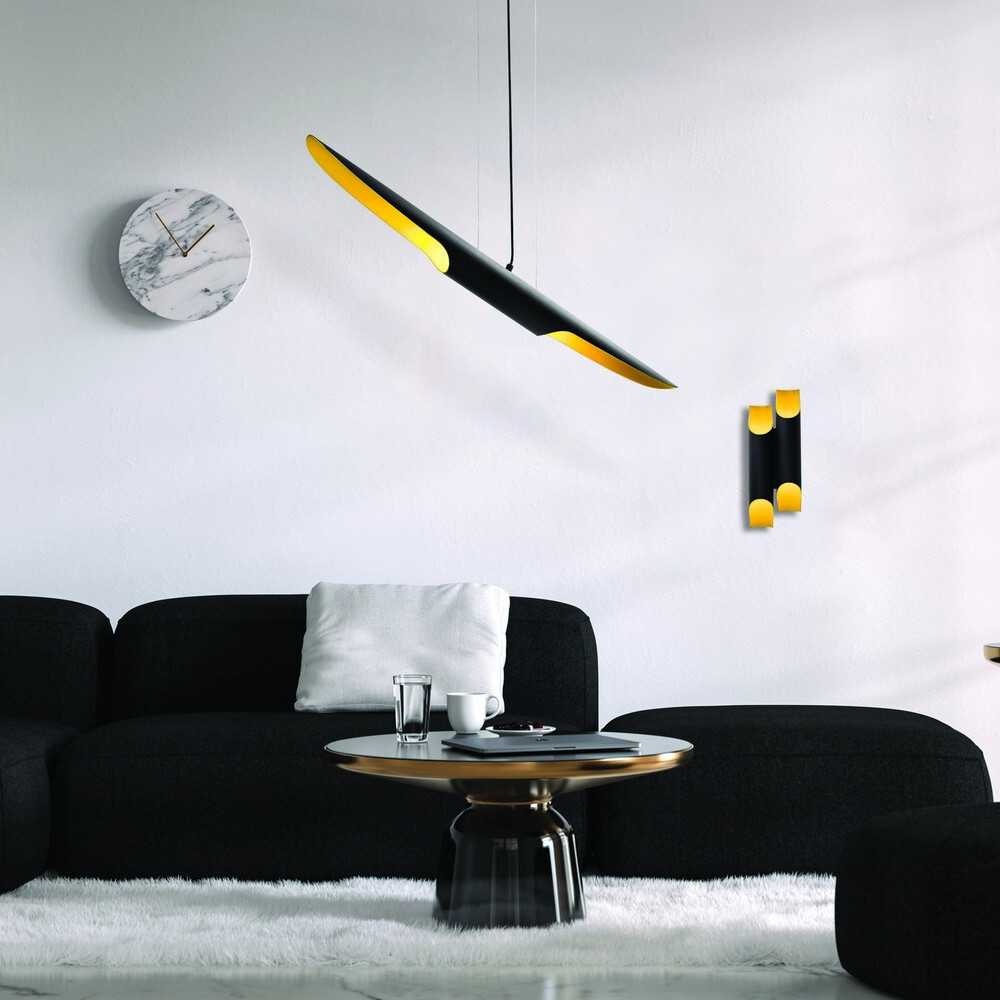 Elegáns fekete csillár, fém test, 100 x 8 cm, magasság: 104 cm | Állítható magasságú, 2 x E14 Max 40W | Glam skandináv design, tökéletes modern nappalikba és étkezőkbe, IP20 besorolású