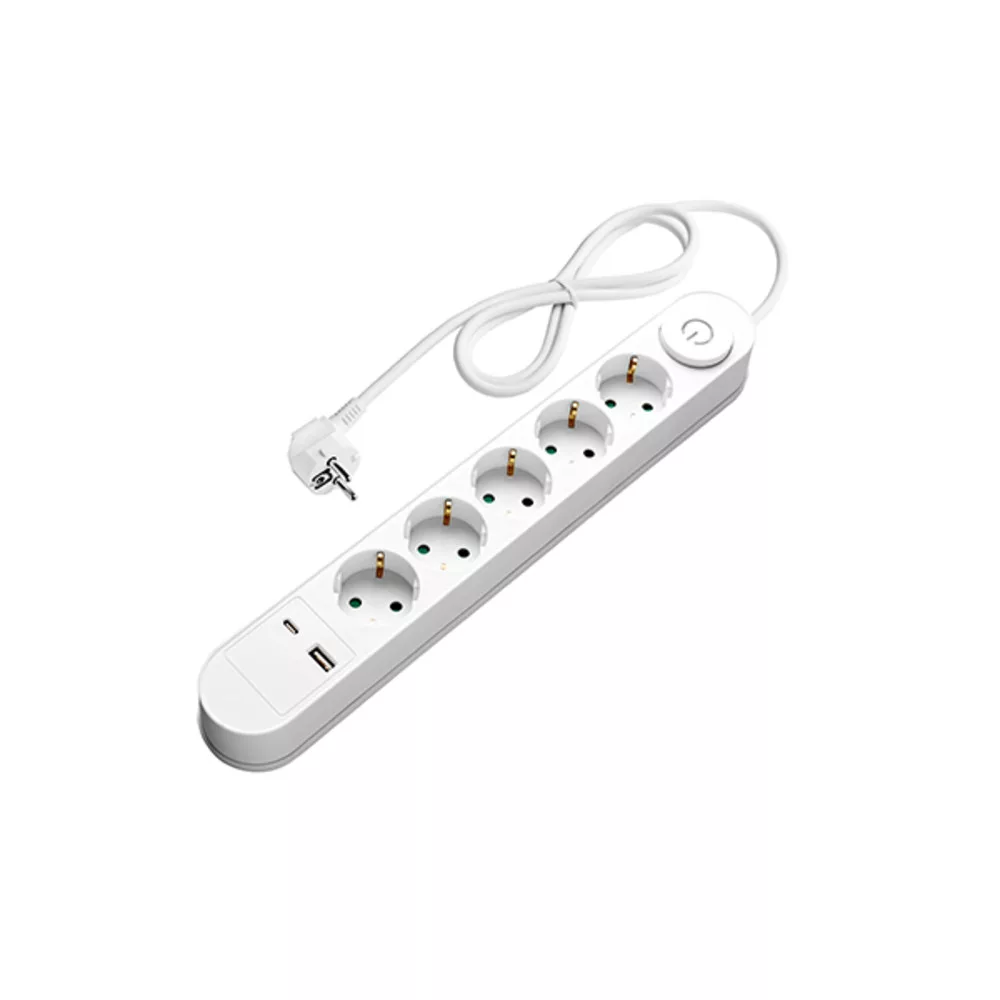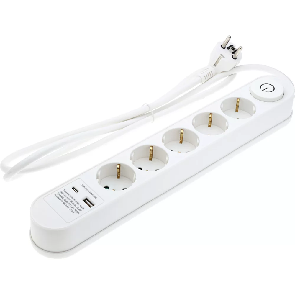 Optonica márkájú elosztó, amely öt földelt német (Schuko) foglalattal, egy könnyen elérhető be-/kikapcsoló gombbal és két USB töltőporral rendelkezik. Praktikus megoldás, ha egyszerre kell hálózati eszközöket és USB-s mobilkészülékeket csatlakoztatni; a be-/kikapcsolóval az összes csatlakoztatott eszköz áramellátása egy mozdulattal megszakítható. A földelt német aljzatok biztonságos csatlakozást nyújtanak nagyobb fogyasztású berendezések számára, míg a USB portok kényelmes töltést biztosítanak telefonoknak, táblagépeknek és egyéb kiegészítőknek. Kompakt, letisztult kivitel, egyszerű üzembe helyezés és mindennapi használatra tervezett funkcionalitás. Használat előtt ellenőrizze az eszközök és az elosztó terhelhetőségét, és kerülje a nedves környezetet illetve a túlterhelést.