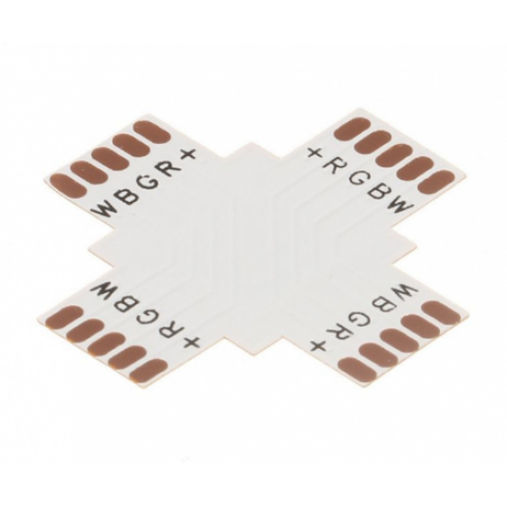 A LED szalagok nyomtatott áramköri lapjából kialakított X elosztó, mely tetszés szerint használható L vagy T elosztóként is. A LED szalagot vagy forrasztással, vagy gyorscsatlakozóval tudjuk rögzíteni az elosztóban.