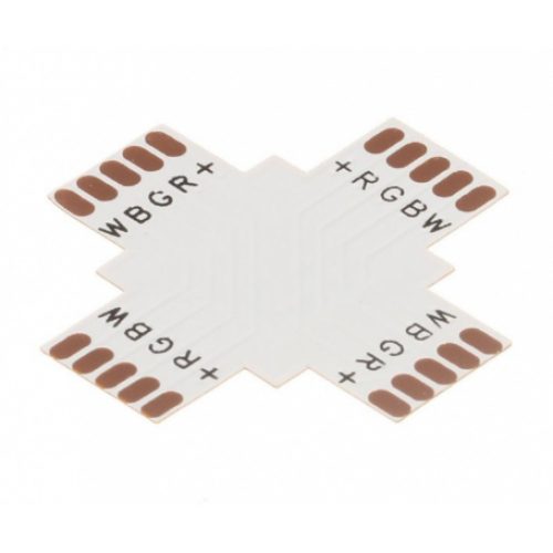 Keresztcsatlakozó a 10 mm széles LED szalagokhoz, amelyen RGBW 5050 SMD LED-ek találhatóak.