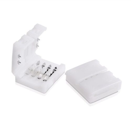 LED-szalag toldóelem a beltéri (5050-es típusú, 10 mm széles), négyeres, színváltós RGB LED szalagok forrasztásmentes toldásához.