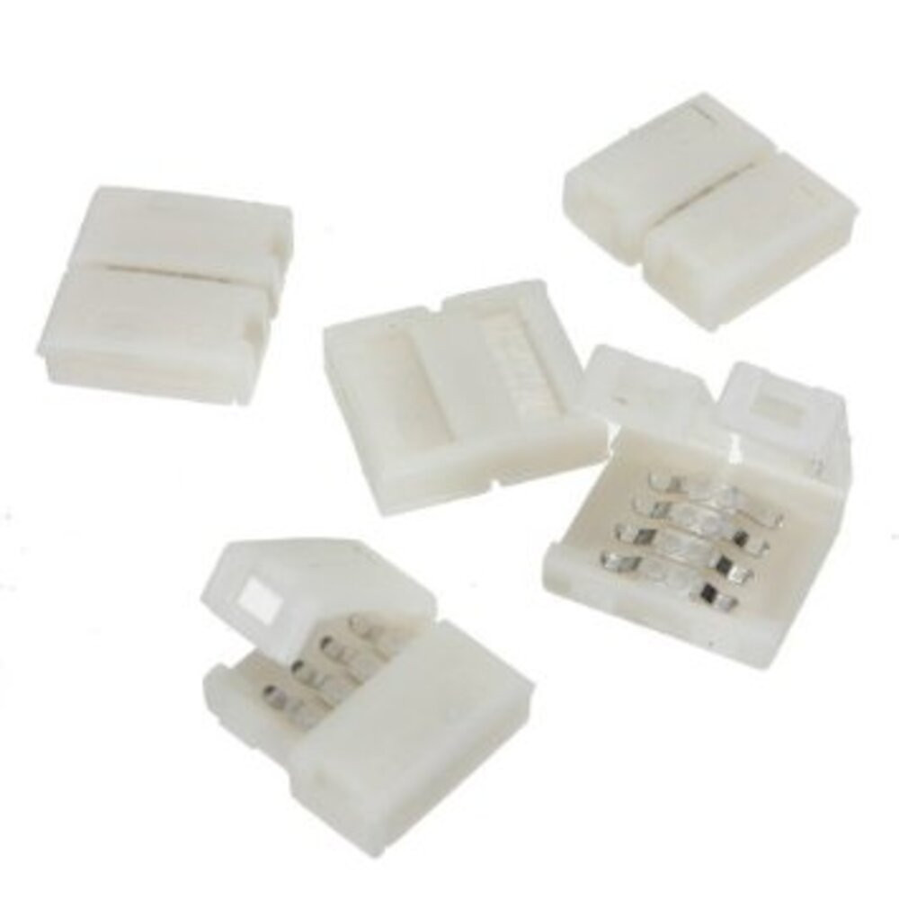 LED-szalag toldóelem a beltéri (5050-es típusú, 12 mm széles), öteres, színváltós RGBW LED szalagok forrasztásmentes toldásához.