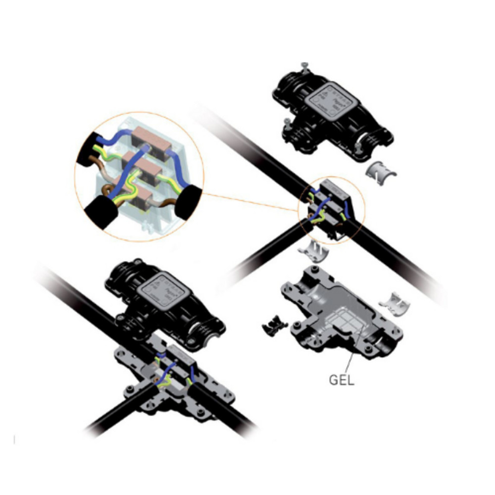 • A GÉL az idő múlásával puha marad, lehetővé téve a csatlakozások újrafelhasználását anélkül, hogy a kábelt a csatlakozó végén el kellene vágni.