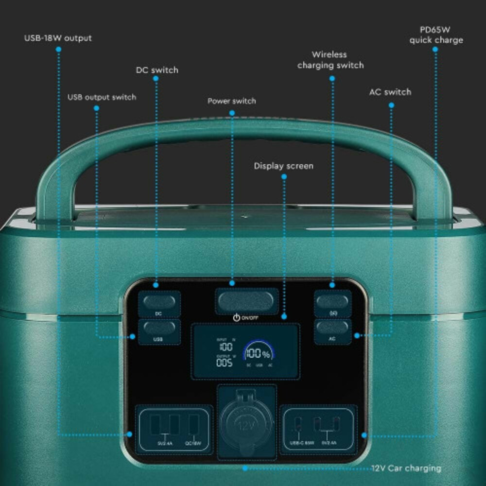 A power station saját beépített LED világítással is rendelkezik (500 lm).