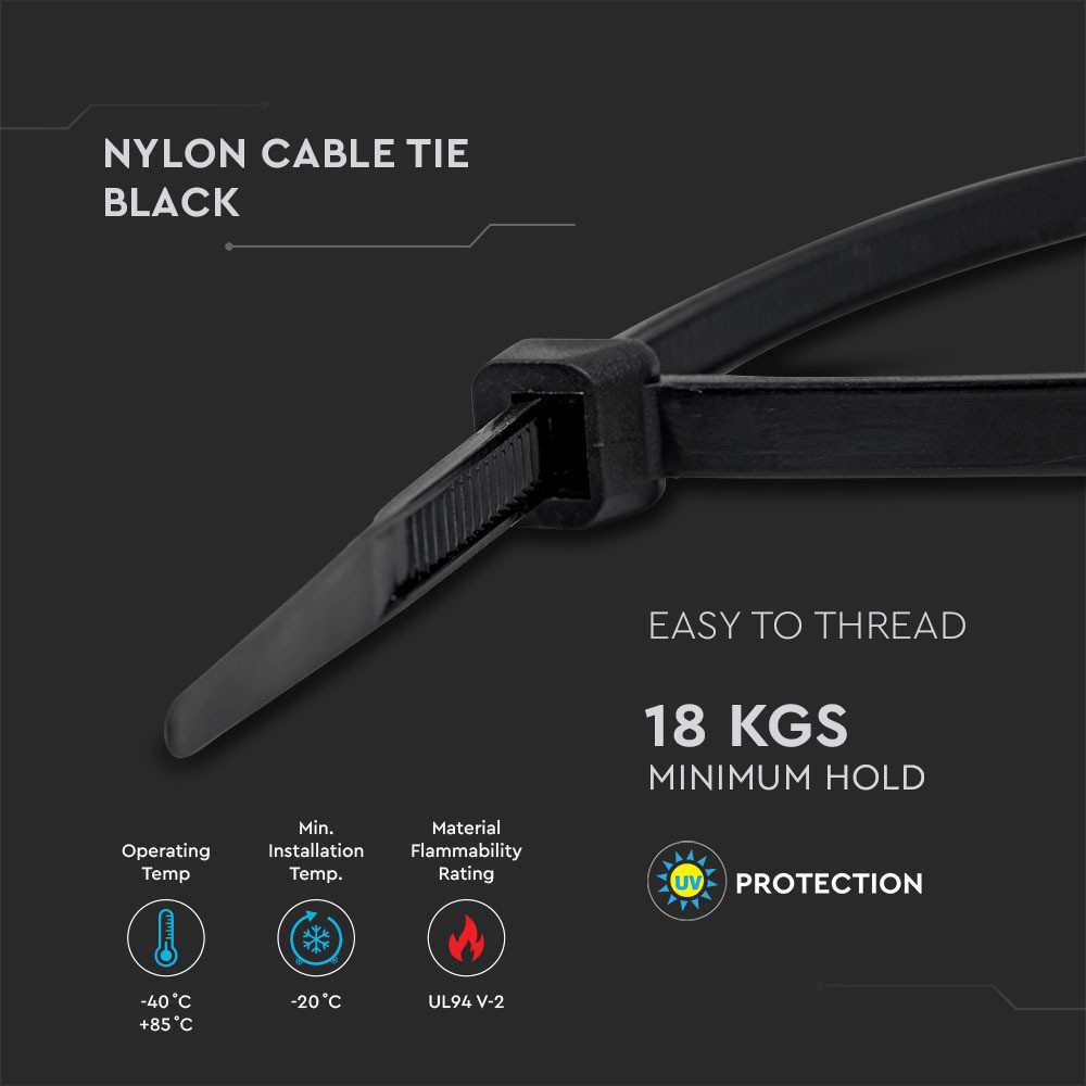 Műanyag kábelkötegelő, fekete, 100 db/csomag, V-TAC, 11168