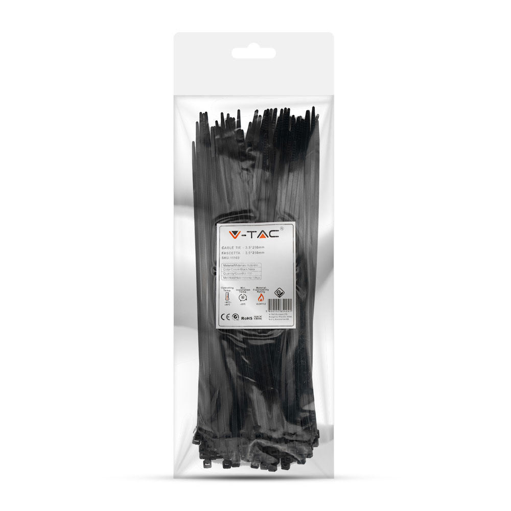 Műanyag kábelkötegelő, fekete, 100 db/csomag, V-TAC, 11169