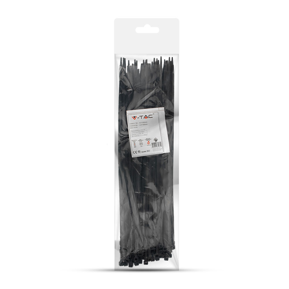 Műanyag kábelkötegelő, fekete, 100 db/csomag, V-TAC, 11176