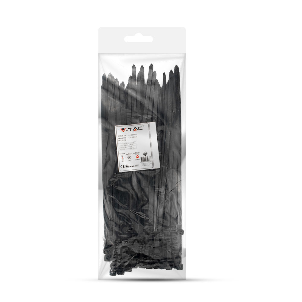 Műanyag kábelkötegelő, fekete, 100 db/csomag, V-TAC, 11178