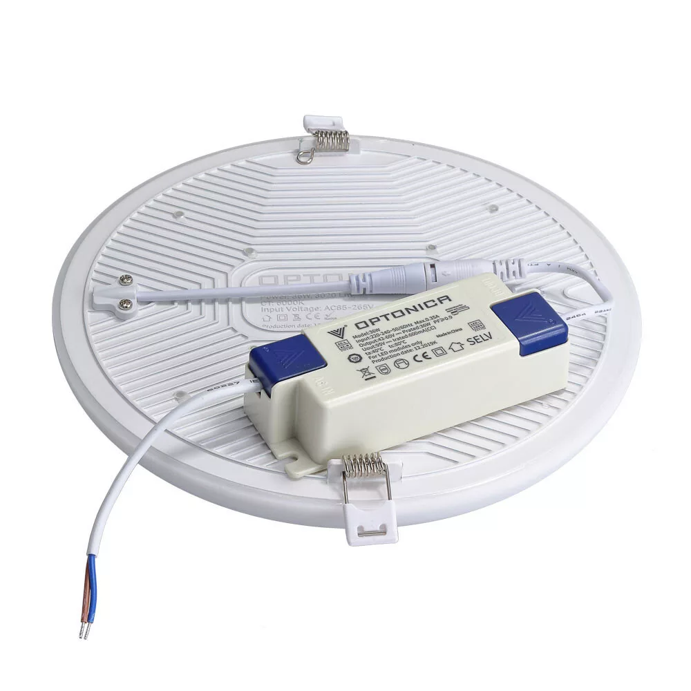 Keret nélküli LED panel kerek, 36W, 6000K, hideg fehér, 3020 lm, fehér, IP54, Optonica, 2675