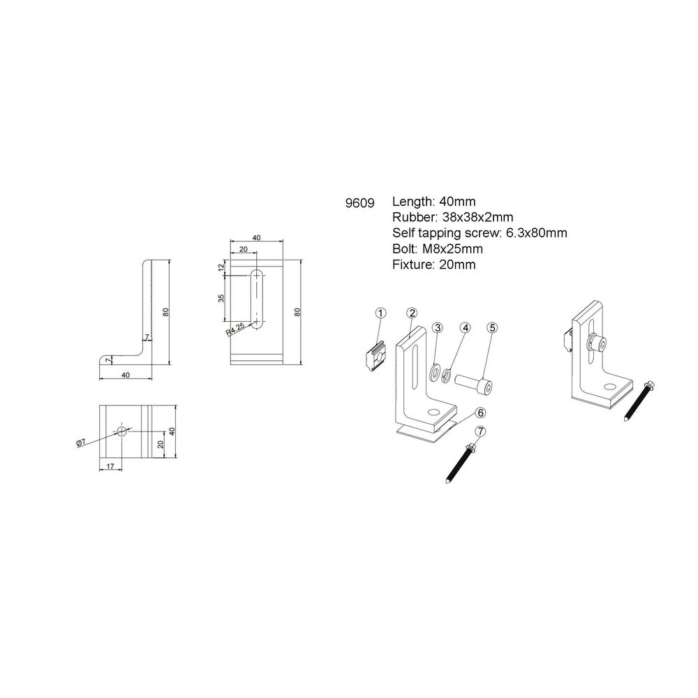 L láb m8 * 25 mm-es gumibetéttel + csavarral, Optonica, 9609