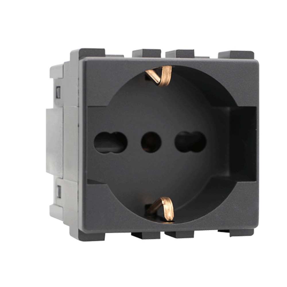 A Lecce olasz szabvány aljzat egy modern, szögletes dizájnnal rendelkező termék, amely ideális megoldást kínálok belső és külső felhasználásra. A termék antikszürke színvilágának köszönhetően könnyen illeszkedik a különböző enteriőrökbe, miközben biztosítja a megbízható elektromos csatlakozást. A kiemelkedő 16 A névleges áramerősség és a 230 V feszültség biztosítja, hogy különböző elektromos eszközök biztonságosan csatlakoztathatóak legyenek az aljzatra, a felhasználói igények kielégítésével.