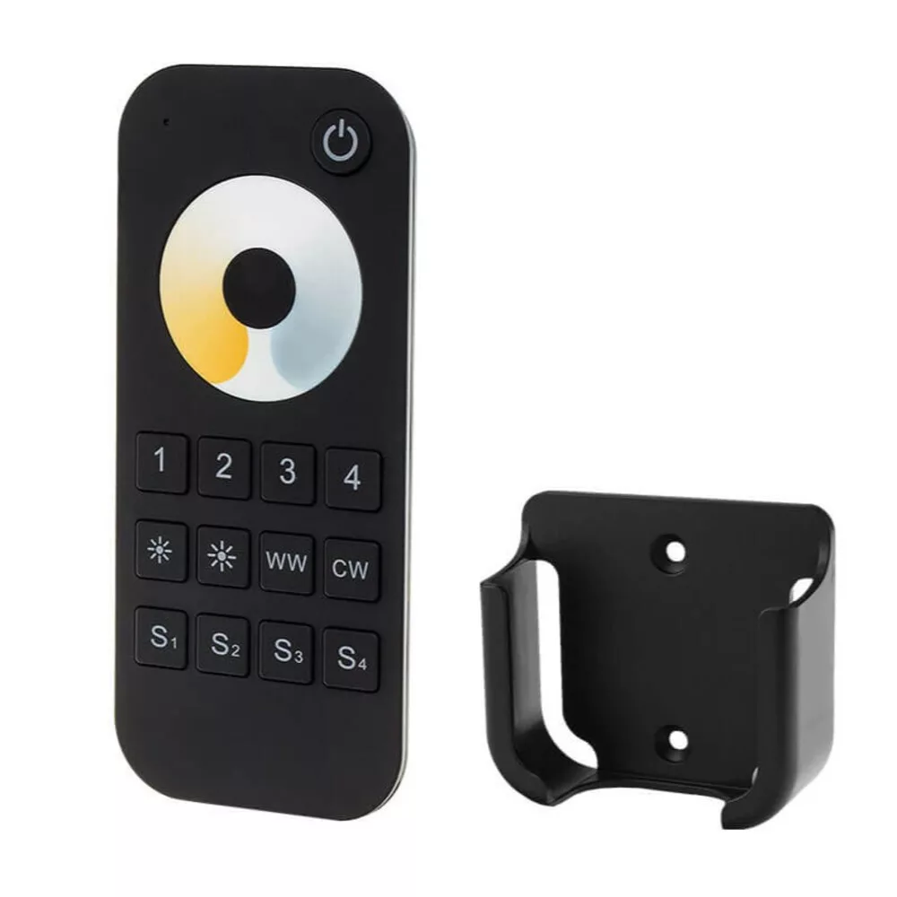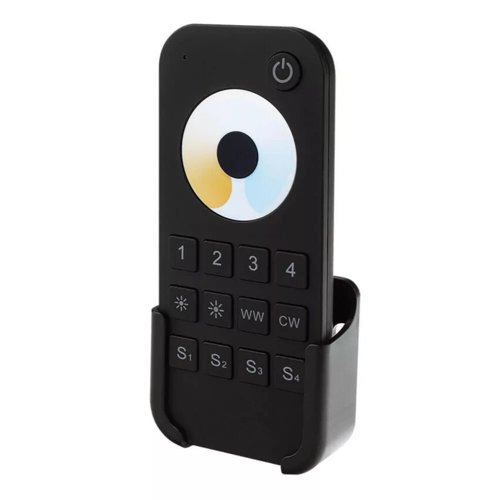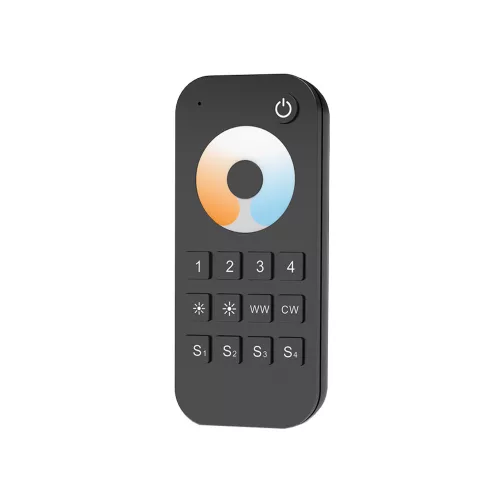Optonica RT7 4 zónás RF 2,4 GHz távirányító fekete kivitelben, amely 3000–6000 K között szabályozható színhőmérsékletű LED világítások vezérlésére készült. Négy független zóna lehetővé teszi több LED-csík vagy világítási kör egyéni, párhuzamos vezérlését. A 2,4 GHz-es RF technológia stabil, zavarmentes kapcsolatot biztosít, közvetlen rálátás nélkül is működik. Dimmelési és színhőmérséklet-állítási funkciók állnak rendelkezésre, továbbá memória funkció az utolsó beállítások megőrzéséhez. Egyszerű párosítás és kezelhetőség, kompatibilis Optonica LED rendszerekkel és általános RF vevőkkel. Fekete, letisztult dizájn, ideális lakossági és kereskedelmi alkalmazásokhoz, hangulatvilágítás, munkatér és bemutatóterem finomhangolásához.