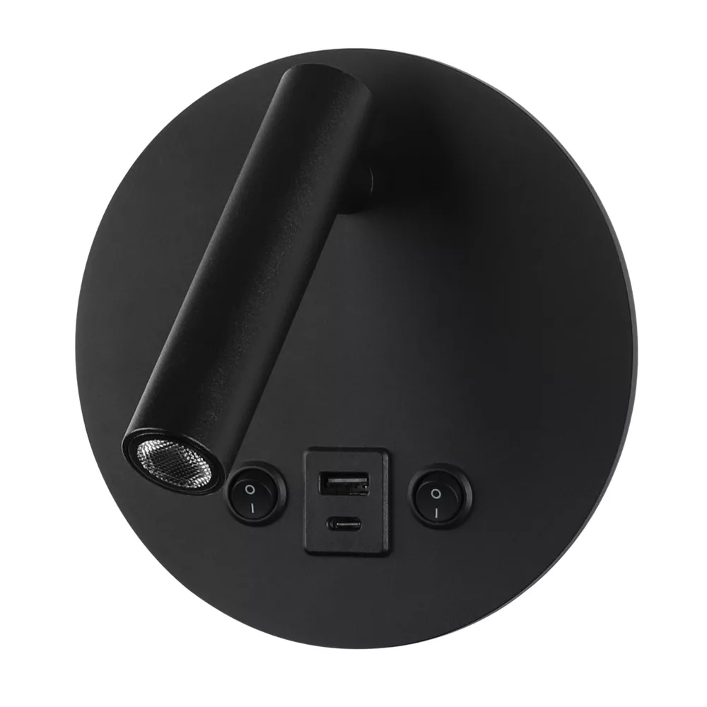 LED fali lámpa 8w ki/be kapcsolóval + usb fekete, 2700K, meleg fehér, 700 lm, Optonica, 7585