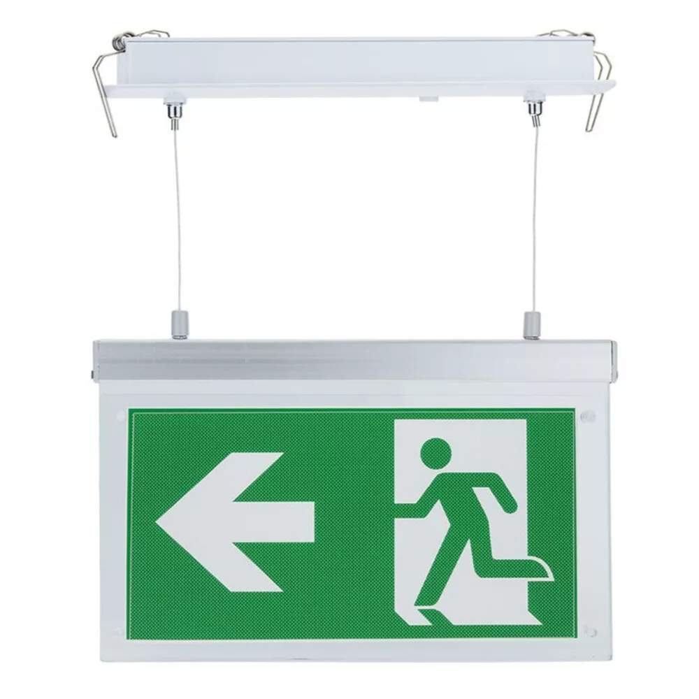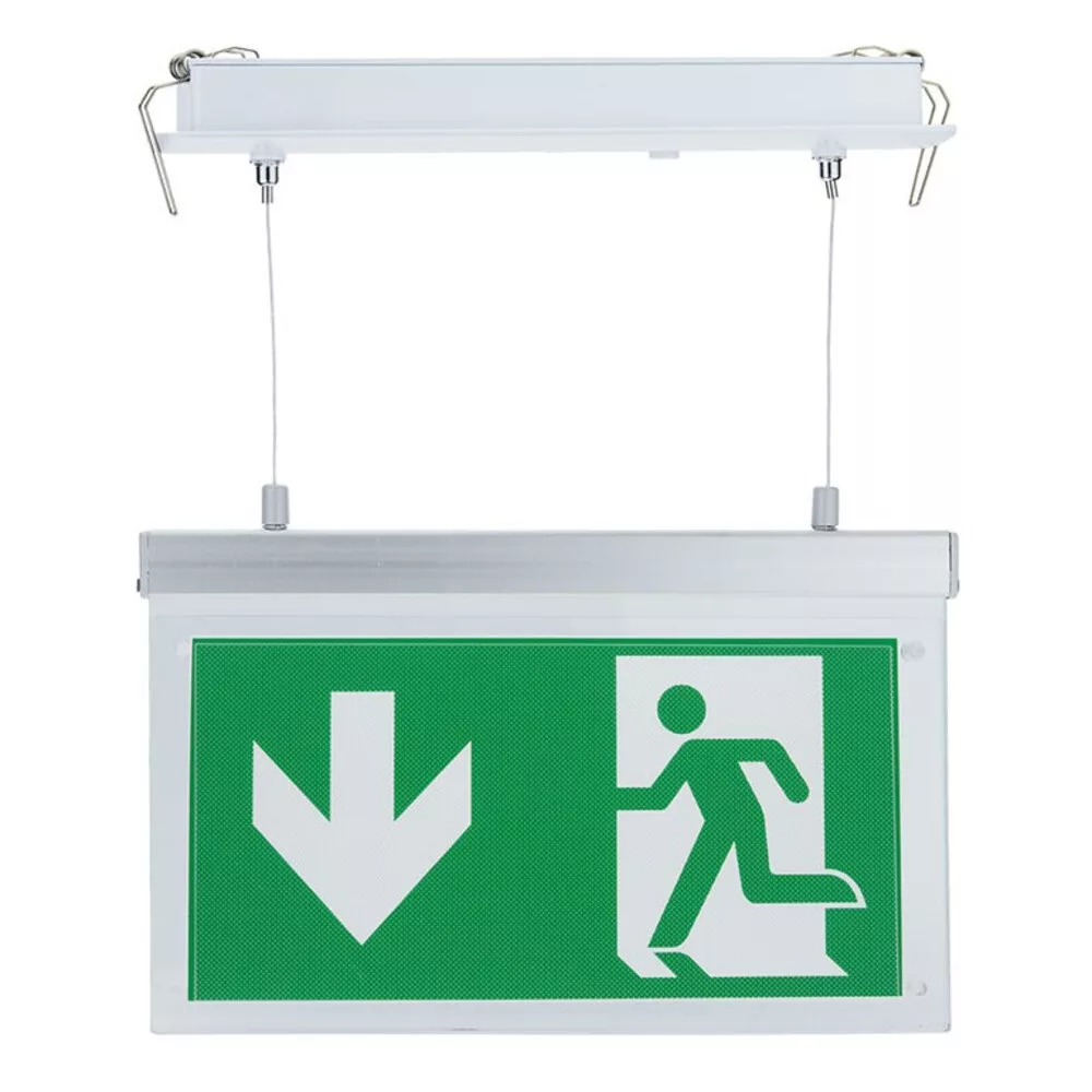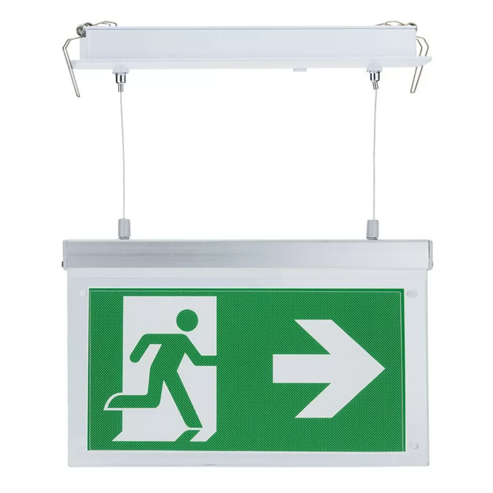 Kompakt, függesztett kialakítású LED vészkijárat világítás, amely PVC felirattal biztosít jól látható menekülési irányjelzést és folyamatos vészvilágítást legfeljebb 3 órás üzemidővel. Alacsony energiafogyasztású (2 W) és 80 lm fényáramú LED-modullal rendelkezik, így energiahatékony, megbízható megoldás belső terek vészkijáratainak jelzésére.