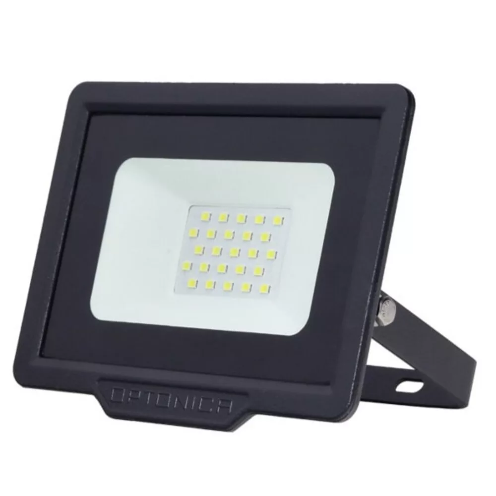 Optonica LED SMD reflektor, fekete kivitel: kompakt és időtálló kültéri világítótest 20W teljesítménnyel, természetes fehér (4500K) színhőmérséklettel és 1600 lumen fényárammal. Az SMD LED-technológia alacsony energiafogyasztást és egyenletes, árnyékmentes világítást biztosít, így ideális homlokzatok, kertek, parkolók, járdák és reklámtáblák megvilágítására. IP65 védettségének köszönhetően por- és vízálló, kültéri körülmények között is megbízhatóan működik. Letisztult fekete burkolata modernek és diszkrétek, könnyen illeszkednek különböző építészeti stílusokhoz. Gyorsan bekapcsolható, karbantartásigény minimalizált, hosszú távú üzemeltetésre tervezett megoldás azok számára, akik energiahatékony és tartós kültéri világítást keresnek.