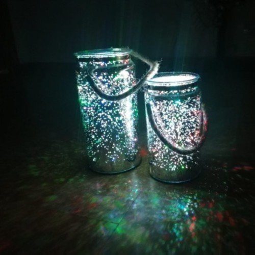 LED dekoráció , beltéri , ezüst üveg világítás , 20 cm , RGB , 15 db LED , elemes