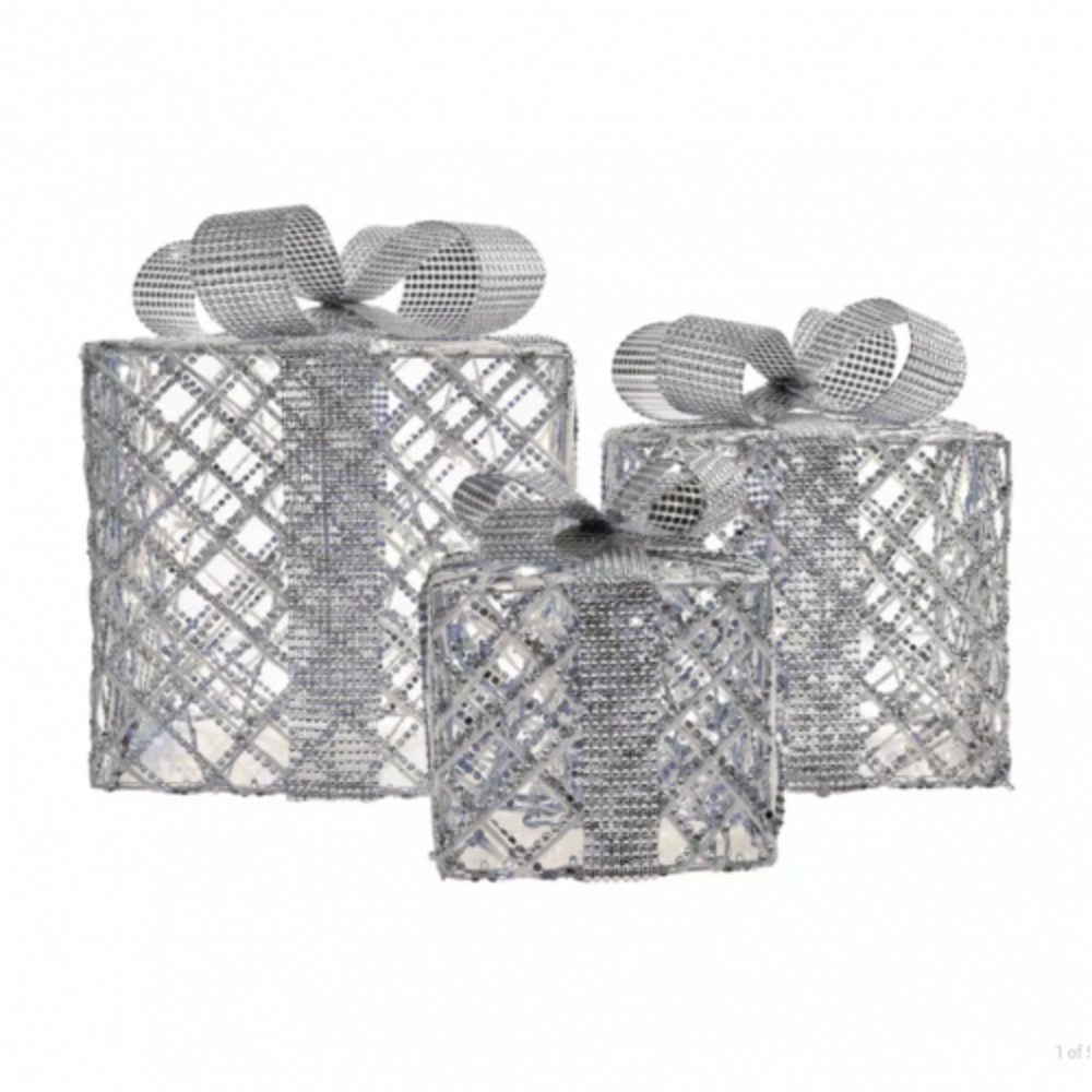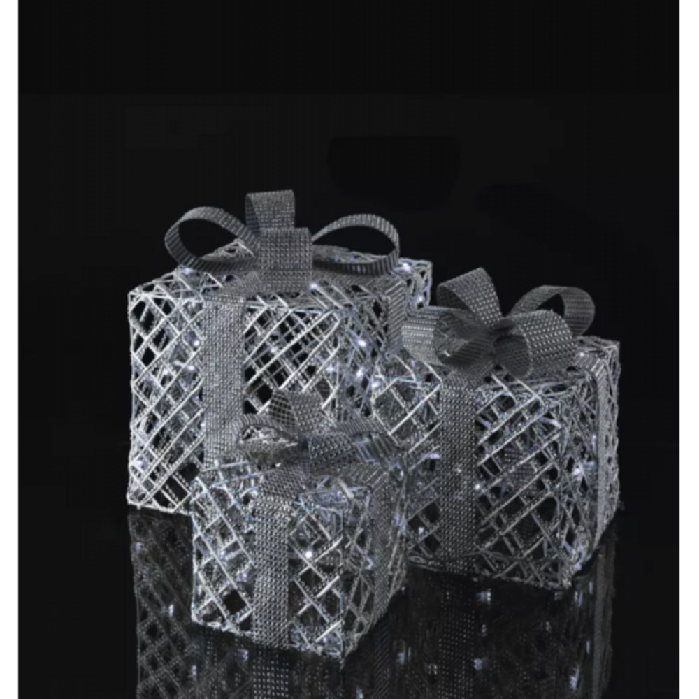 LED dekoráció , beltéri/kültéri , ajándékdobozok , 3 x 72 db led , hideg fehér , IP44 , időzíthető