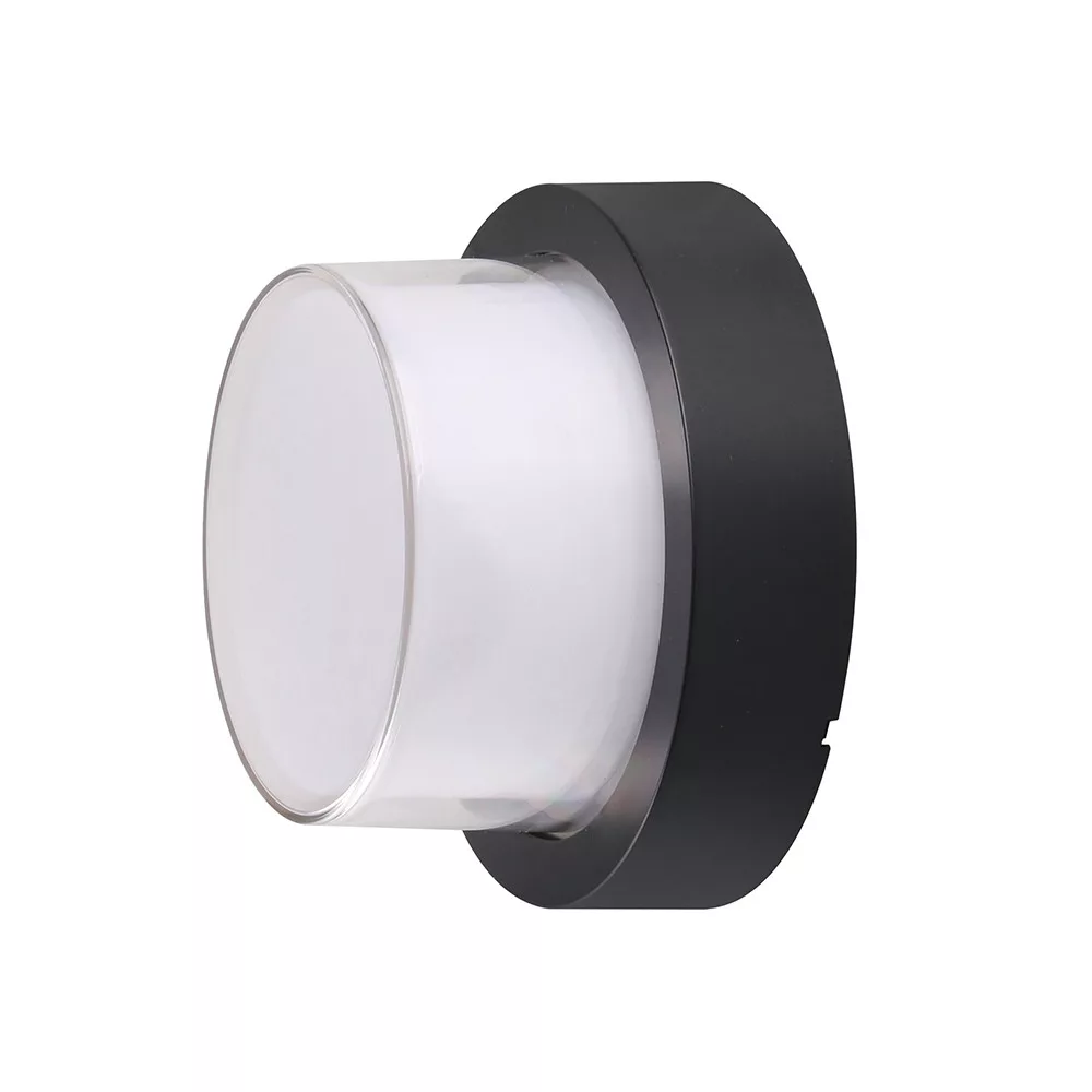 Optonica fekete, kerek LED fali lámpa — 12 W, 4200 K, 850 lm, IP65