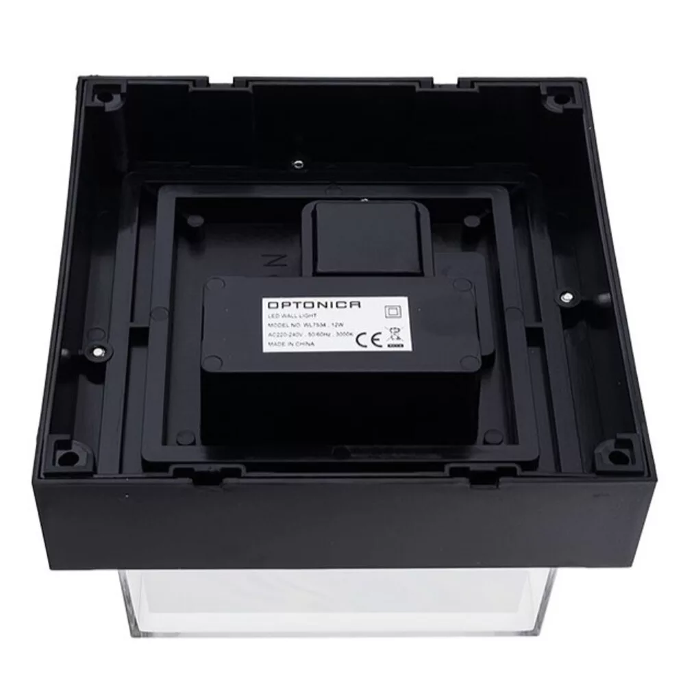 LED fali lámpa fekete, négyzet alakútel, 12W, 3000K, meleg fehér, 850 lm, IP65, Optonica, 7534