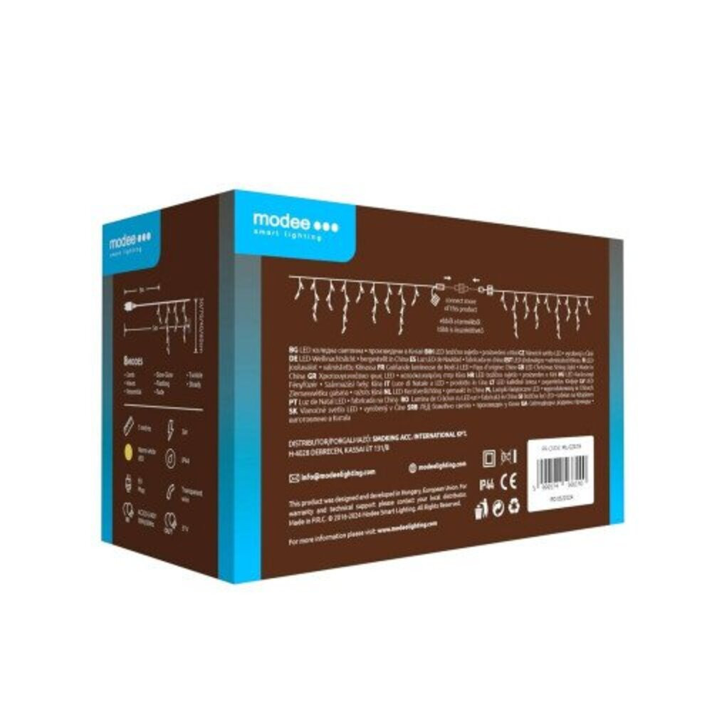 LED fényfüzér , bővíthető , beltéri/kültéri , 100 db LED , 2 m , meleg fehér , 8 programos , jégcsap , IP44 , Modee
