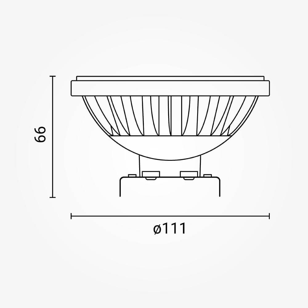 Professzionális LED AR111 izzó G53 foglalathoz, Epistar chip technológiával. 15 W teljesítmény mellett 1050 lm fényáramot biztosít (kb. 70 lm/W), 4500 K természetes fehér színhőmérséklettel. A 30°-os sugárzásszög irányított, spotlight jellegű megvilágítást ad, ezért különösen alkalmas kiemelésekhez, üzlethelyiségekbe, galériákba, kiállításokra és vendéglátóegységekbe. Ezüst burkolata esztétikus, professzionális megjelenést kölcsönöz. Alacsony hőtermelés, energiatakarékos működés és megbízható Epistar LED-chip jellemzi, ami hosszú üzemidőt és alacsony karbantartási igényt eredményez. Kompatibilis G53 foglalattal; telepítéskor célszerű ellenőrizni a lámpatest és a tápegység műszaki követelményeit.