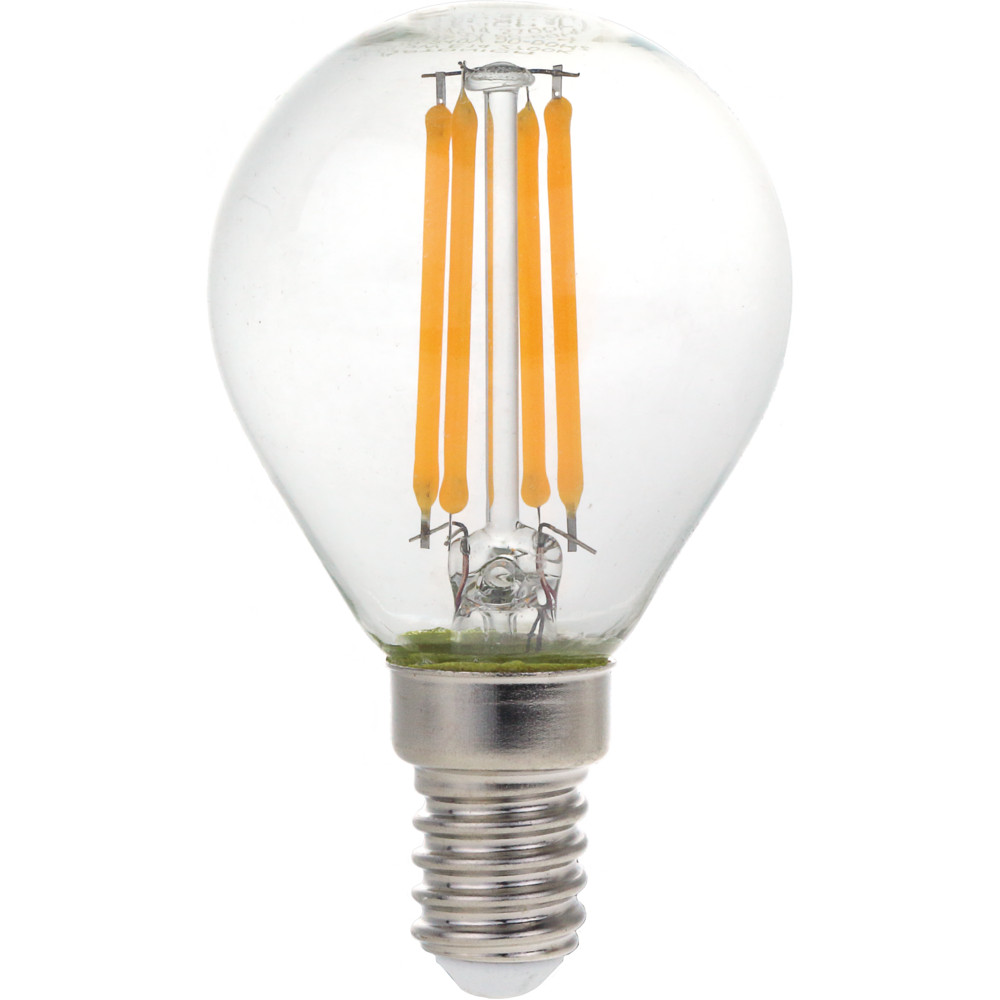Optonica G45 LED izzószálas izzó E14 foglalattal, átlátszó üveg burával. 4 W fogyasztás mellett 400 lm fényáramot biztosít, 2700 K színhőmérsékletű meleg fehér fényt adva, amely kellemes, otthonos hangulatot teremt. Dimmelhető kivitel, így fényerőszabályozható, azonban a dimmerkompatibilitás berendezésenként változhat, ezért ajánlott a rendszer ellenőrzése a telepítés előtt. A filament kialakítás dekoratív, retró megjelenést kölcsönöz, ezért látszó lámpatestekben különösen esztétikus választás. Kis energiafogyasztásával és hatékony fénykibocsátásával energiatakarékos alternatívája a hagyományos izzóknak (kb. 30 W körüli hagyományos izzónak megfelelő fényhatás). E14 foglalatának köszönhetően egyszerűen cserélhető a legtöbb szabványos lámpatestben.